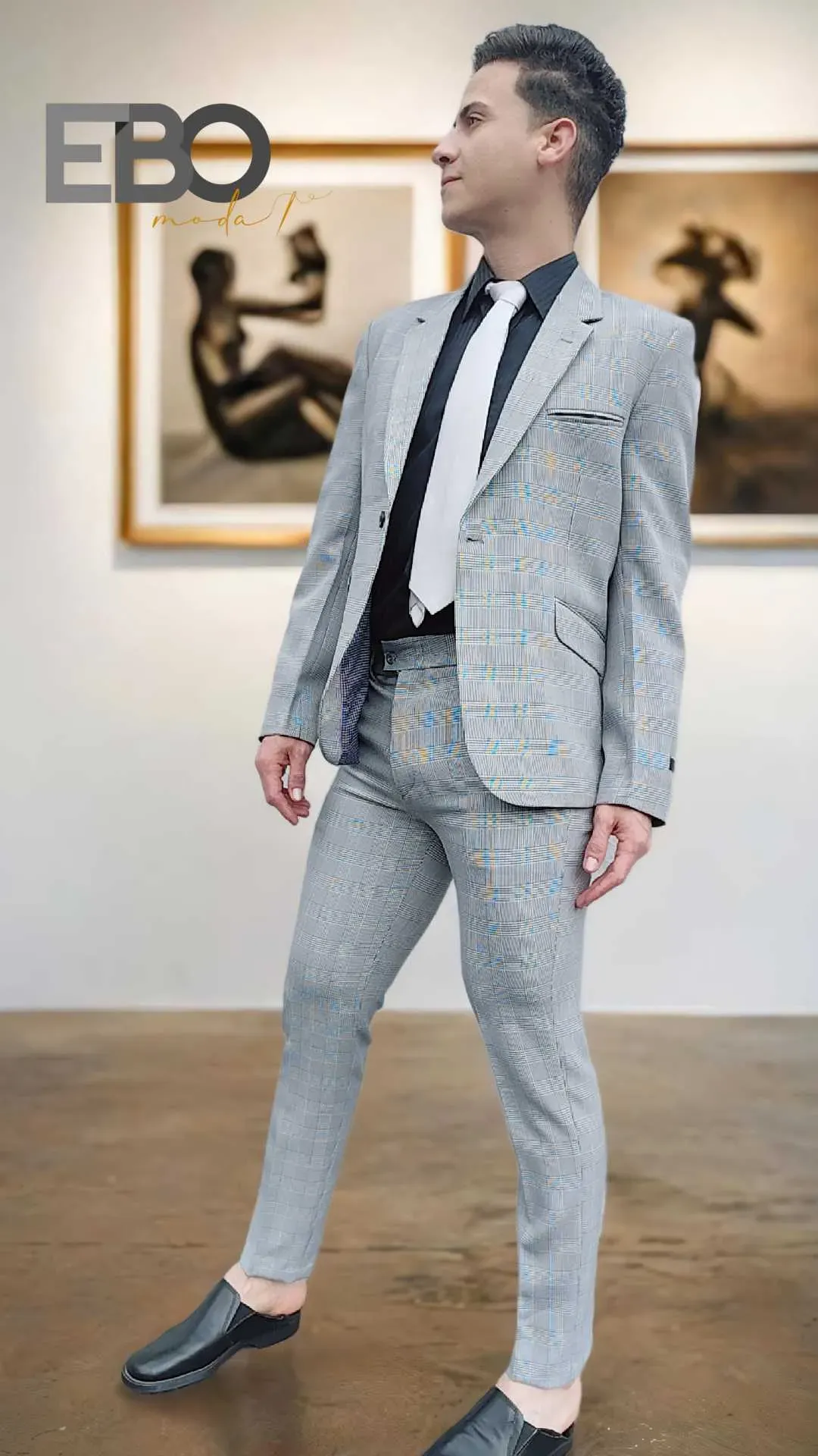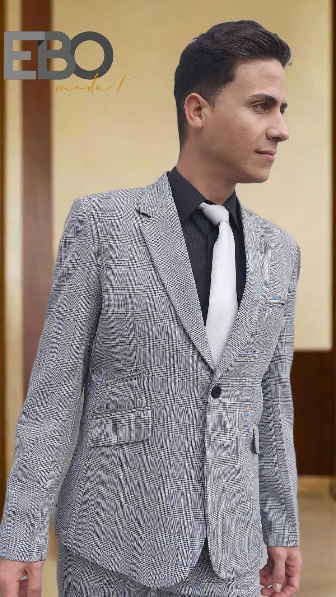 Traje corte Slim fit, cuello clásico, 2 botones, 1 abertura en la espalda, bolsillos de tapa con un bolsillo superior de lado derecho.